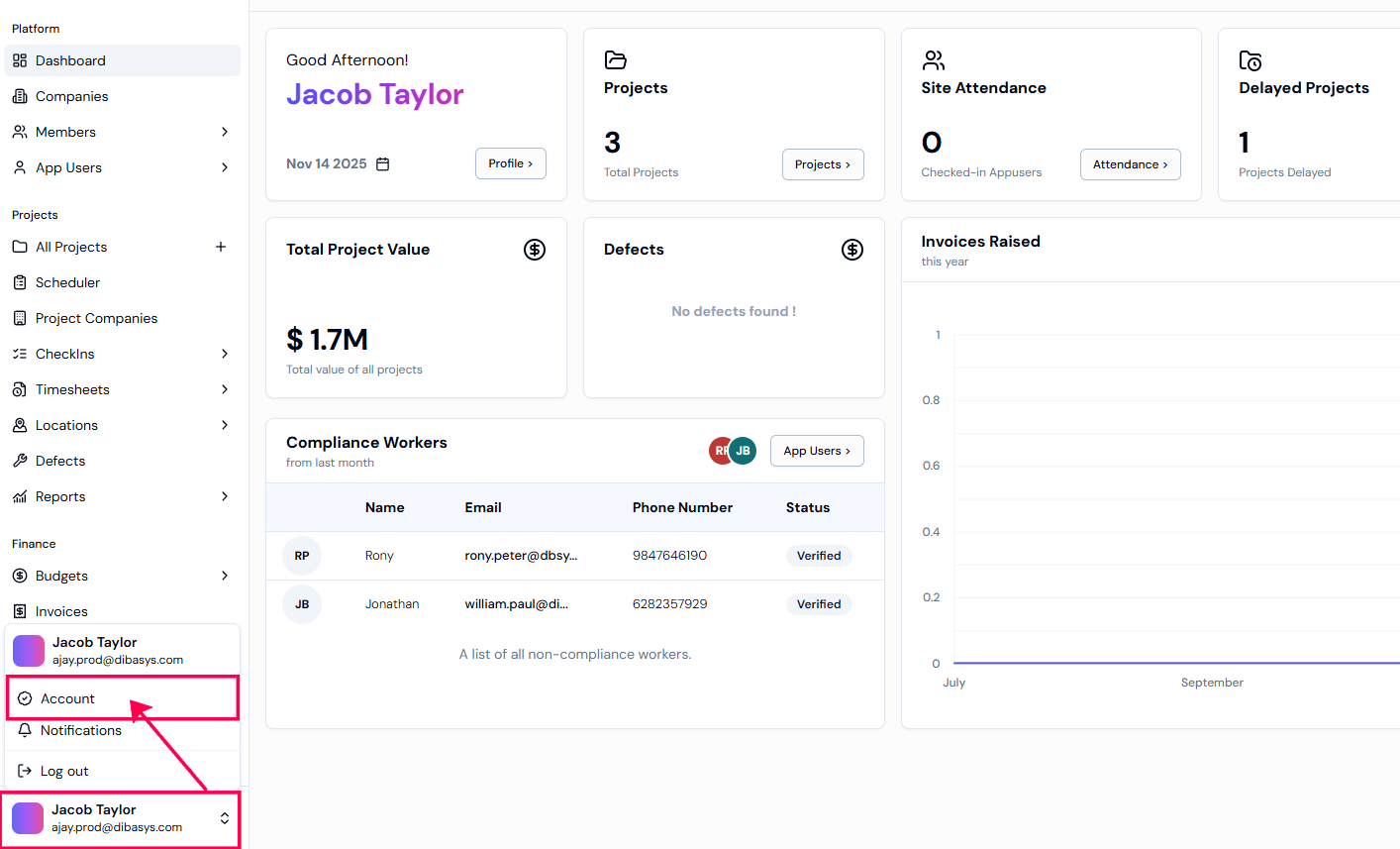 Step 1: To access ‘Settings,‘ Select your profile in the bottom left-hand corner of your screen. Select ‘Account’ to view general settings.