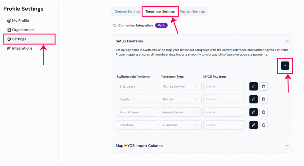 There are default pay items in the Swift Checkin platform that you can apply to your daily operations, or you can create new ones according to the requirements. You can add the new pay items in your ‘Settings.’