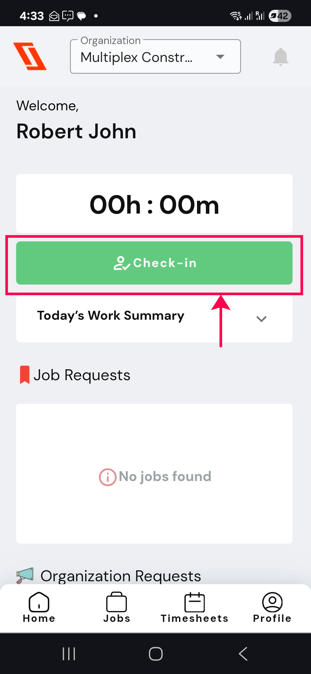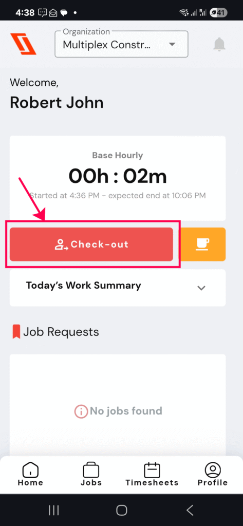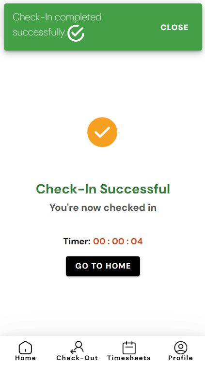 Once the work is completed for the day, proceed with the check-out process to ensure that a timesheet is auto generated, (if time tracking is required by your organization.)The steps are as follows: