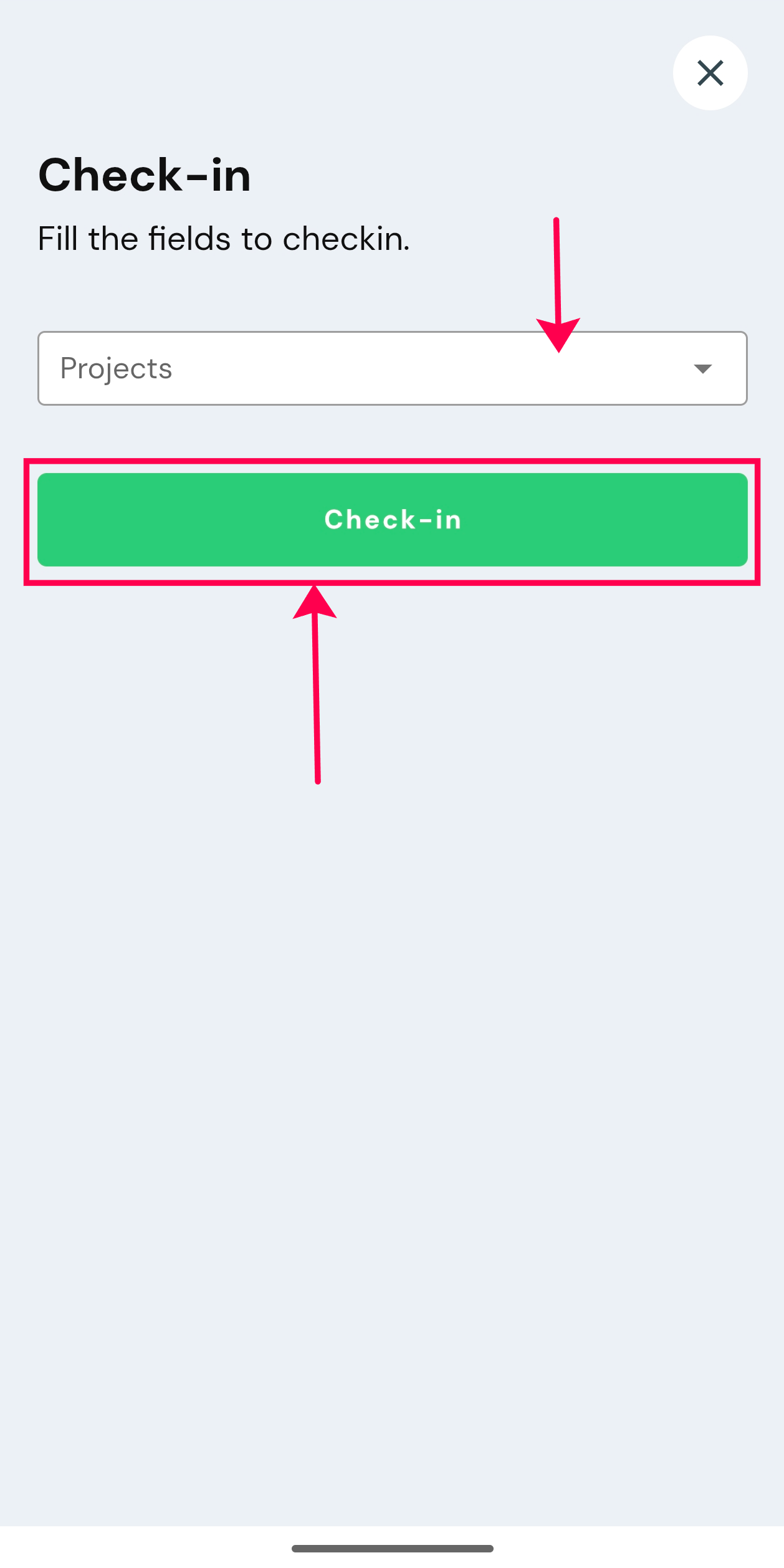 Step 3. Choose your “Project” from the dropdown and click “Check-in“.